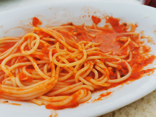 Wir kommen sehr gerne hier her, aber eine große Auswahl an Essen in der Standardkarte kann man hier nicht erwarten. Dafür gibt es täglich wechselnde Tagesessen. Sehr beliebt ist der Salat mit Maultaschen. Leider sind die Maultaschen häufig nur schnell von einer Seite angebraten und selten richtig warm, wenn man den Salat erhält. Ebenso sind die Putenstreifen auf dem Salat meist lau. Nun habe ich mich mal der Pasta Napoli gewidmet und wurde extrem enttäuscht. Die Portion für 8,80 Euro ist überteuert. Die Pasta ist sehr weich gekocht und die Soße total wässrig (siehe Foto) und schmeckt nach gar nichts. Jede Mikrowelle hätte die Speise heißer an den Tisch gebracht - kälter als lau. Ich hätte nie gedacht, dass man eine schlichte Tomatensoße nicht hinbekommt: Es fehlt komplett an Gewürzen und sie haftet auch kein bisschen an den Nudeln. Petersilie oben drauf anstelle von Basilikum wunderte mich zusätzlich.