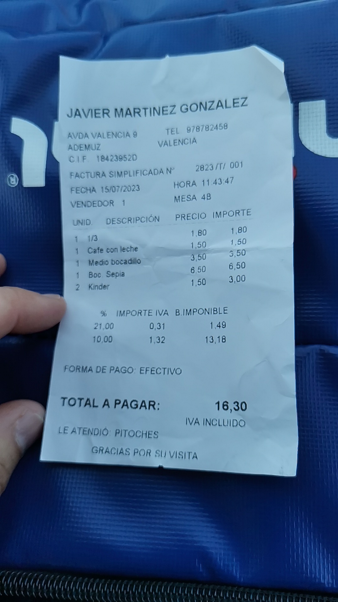 Read moreDecepcionados. El trato de uno de los dos camareros inaceptable. Mientras estába realizando el pedido me ha dejado hablando sólo y se ha ido a hacer otra cosa. Al no traerlo, se lo he vuelto a pedir y ni siquiera me ha mirado a la cara. He pedido un bocadillo de sepia mediano y me ha cobrado uno grande. Le he tenido que reclamar el ticket porque no lo ha facilitado y su explicación ha sido que: como me lo he comido, pues le parecía que no me importaría, que se ha equivocado la cocinera y que él no puede estar en todo. Cuando viajamos los clientes tenemos derecho a un trato respetuoso y agradable por parte de los camareros, del mismo modo que nosotros respetamos su trabajo. Eso sí, me ha dicho que no le importaba devolverme los 2€. La próxima vez me gustaría escoger a mi...