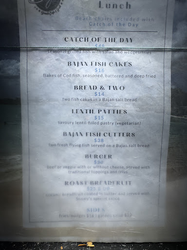 Read moreDon’t even bother… We were walking along the beach and thought about stopping for a quick lunch. We asked for 2 beers that came literally warm. I mentioned it to the waitress and she said that she forgot to mention that they just put them in (yet they sold warm beer). We decided to ask for 2 fish cutters - nothing too elaborate - and it took about 30 min until I asked what was going on with the order. Despite the two other tables with people they said that there was a missed up and that they would take 10 min. We also ordered 2 rum punches which were basically mango juice and a dash of grenadine… the total bill for 2 beers and 2 RPs was $50 Barbados…. Cash only. As I said. Don’t...