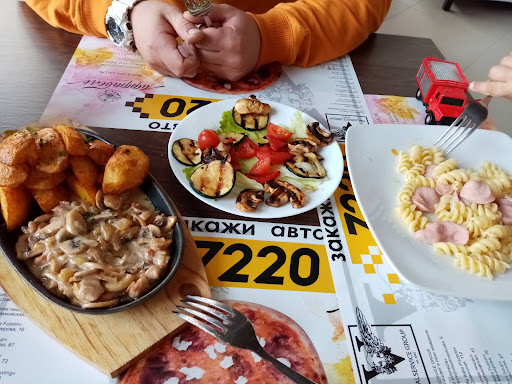 Read moreЗаказали две пиццы по цене одной. Ждали час, но сказали 30 минут. Заказали ещё десерты, чтобы совсем голодными не остаться - ждали их минут 10. Десерты вкусные, вопросов нет. Пицца вообще не итальянская, скорее соответствует "два по одной цене разделенное на два", т.е. если платить за каждую рублей по 8-9, то ещё норм. Заказали с салями и с ананасами. В составе на первых местах сыр и томатная паста, хотя сыра мало, а томатной пасты вообще практически нет. Тесто какое-то сухое получилось как и сама пицца. С ананасами было тяжело есть из-за сильной сухости, с салями, по сравнению с ананасами была ещё более менее. Телефоном оплачивать нельзя. В результате в чеке ещё посчитали коробки! Какие коробки?! Коробки оплачиваются только при заказе на вынос. В общем не самое лучшее заведение, но при этом места практически всегда заняты. Занимают места часто...