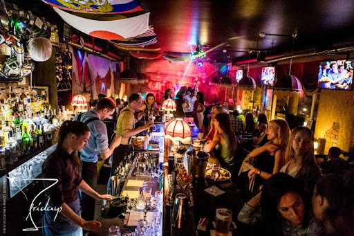 Read moreЗаведение находится в самом в центре города. Очень стильное и довольно не испорченное. Позиционирует себя как коктейль-бар в американском стиле 60х годов. Заведение работает ежедневно с шести вечера до 2х ночи. Интересный интерьер запомнится вам надолго. Повсюду развешены разноцветные флаги разных стран мира, на стенах красуются нью-йоркские небоскребы и девушки в стиле пин-ап. Очень стилизованная и запоминающаяся форма официантов – джинсовый комбинезон поверх клетчатой рубашки. Цены высокие. Меню разнообразное – можно заказать и салаты, и гарниры, и закуски, и горячие блюда, так же есть на выбор бургеры и суши. Так же само МЕНЮ выполнено в интересном формате. Там можно посмотреть не только картинки блюд, но и прочитать интересные факты о них. Порции большие. Очень славится своей необычной разнообразной коктейльной картой на любой вкус. По пятницам-субботам играет музыка, можно потанцевать. Людей набивается много, места – мало. Можно присесть за барной стойкой. Столы на выходные лучше бронировать заранее, так как их не сильно много. Так же можно заказать кальян, который тоже нравится большинству посетителей. Курить сигареты запрещено, как, в принципе, в большинстве заведений города, но кальян разрешен. В выходные работает фотограф, который запечатлеет ваши счастливые лица. Потом фото можно посмотреть в группе Вконтакте. Обязательно стоит посетить хотя бы раз. Одно из самых стильных заведений города, где отдыхает положительный контингент в силу...