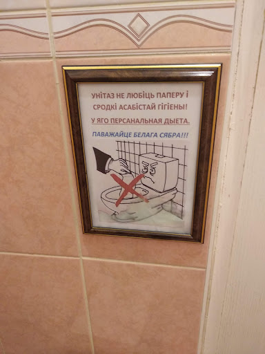 Место просто невероятное! Особенно для дружеских посиделок. Место привлекательное, интересный интерьер, но само заведение небольшое. Так как находится оно в цоколе, то не проветривается не очень, стоит кондиционер, но когда я был там, он не работал. На стенах висят разные забавные шутки. Что можно сказать о кухне и о меню. Меню очень забавное, а именно по названиям: пиццы по месяцам, бургеры и салаты тоже имеют веселые и при этом говорящие сами за себя названия. В данном заведении пробовал бургер и лимонад. Бургер мне достался большой, сочный, очень сытный и неимоверно вкусный, к бургеру шли целофановые перчатки, потому что он очень сочный. Лимонад был мятный, сладенький, освежающий и очень насыщенный, а вот имбирный не очень насыщенный. Персонал говорит и на русском и на беларусском, и скорее всего на английском, ибо у них достаточно часто бывают иностранные гости. Цены... невероятно низкие за такие вкусные блюда, а что стоит отдельно обеденное меню. Салат, суп, второе и компот выйдет в 5 рублей (напиток идёт бесплатно при заказе обеденного меню). Впечатления только самые самые лучшие и я желаю ребятам развиваться и перебираться на ступеньку выше. Спасибо! Было очень вкусно! :) Фото забавных табличек...