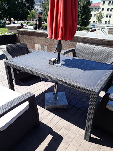 Read moreУжас! Испоганили всё настроение! Я уже молчу про цены, которые не соответствуют ни вкусу, ни объему блюд, ни обслуживанию. Но это дело не первое! Техника безопасности отсутствует напрочь! На летней террасе нас чуть не убило зонтом над столиком. Зонт ни чем толком не закреплен, не забетонирован. Зонт вырвало, при том что сегодня никакого урагана нет! И никто к нам на помощь не подошел из персонала, кроме прохожих. Мы изо всех сил держали стол с зонтом, а его металлическая плита врезалась девушке в ногу! Вместо каких-либо объяснений администратор обвинила нас во всем случившимся, нахамила и проверила не разбилось ли чего, чтобы мы оплатили. Сок, который только принесли и опрокинулся тоже оплачивать сказали. И вообще типо они даже не видели, что у нас раскрыт зонт. Так а кто за этим должен следить! Такого отношения в ресторане к клиентам сейчас уже редко где встретишь! Кошмар! Если бы были без ребенка, накатали бы жалобу. Это может случится с кем угодно снова! Не ходите туда! Одно там привлекает это...