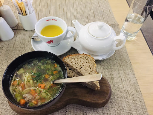 Read moreВчера ужинала в этом месте. По моему я ела самую вкусную вегетарианскую пиццу в Минске, не запомнила ее название, но она с оливками и соусом песто. Сочная, разнообразная, каждый кусочек неповторим. Порадовало качество ингридиентов - выше всяких похвал, браво! Суп минестроне - мне не хватило густоты, но в остальном класический, качественно приготовленный суп, с хорошей чиабатой. На десерт лимонный кекс с цукатами и базиликом, политый глазурью из белого шоколода. Это было божественно! Как приятно платить за отличное качество, и как поднимается настроение от прекрасной еды. Шеф повару спасибо, шеф кондитеру - поклон) Мое райское наслаждение вкусняшками немного омрачалось шумом, ведь заведение находится в торговом центре, но думаю летняя терасса с легкостью компенсирует данный недостаток. В кафе всегда много иностранцев и красивых девушек) Из дополнительного бонуса хочу отметить вежливость персонала, хотя он и выглядит уставшим, тем не менее работаем отлично! В общем, если вы зохотите вкусно поесть, и знать, что вы едите продукты отличного качества - вам обязательно следует...