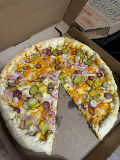 Read moreНа фото пицца «собери сам». Стоимостью 55.50!!! В составе: мюнхенские колбаски, баварские колбаски, бекон, ветчина, лук, сыр моцарелла, сыр Чеддер, соус шаурма, обжаренный лук, огурцы. Наполнителей очень мало, такое ощущение, что чем больше ингредиентов добавляешь, тем меньше их кладут… Некоторых, таких как обжаренный лук, вообще не увидел (зато лука и огурцов не пожалели, можно было только их в состав и добавлять)! В любой пицце, даже в самой дешевой, из меню наполнителей в разы больше! Не умеете готовить пиццы собери сам - уберите их из меню. Заказ...
