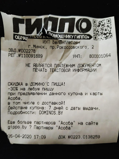 О чем речь: получил в гиппо купон на пиццу: "-30% на пиццу при предъявлении купона и карты Асоба. В том числе с доставкой". Ну что ж, решил попробовать. Сделал заказ 28.04.2020 в 00:35 из одной из пиццерий по пр-ту Рокоссовского. Со мной связалась девушка-оператор и сказала, что по данному купону пиццу нельзя заказать в ночное время, т.к. он распространяется только "на время работы зала ресторанов". НО! Об этом не сказано НИГДЕ, ни в купоне от ГИППО, ни на сайте Пиццерии Доминос. Считаю, что это, мягко выражаясь, нае... кхм, обман покупателя. Грош цена пиццерии Доминос, если они зафакапились, а в итоге страдает клиент, т.к. в качестве извинения мне сказали "извините". Ну-у, что сказать, не извиняю: вечер испорчен. Видимо, какой маркетинг, такой и сервис. Лучше сделать пиццу самому: потратишь меньше нервов да и дешевле выйдет.