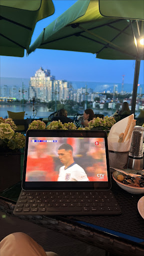 Read moreShould be 3.5 actually. Amazing view. Staff is friendly and helpful. High tables are comfy. Some staff can speak good english. Managers and hostess are reasonable. Now negatives- Food looks good for instagram but taste is average. Out of 4 dishes only 1 satisfied entirely- seafood salad. Burger was below satisfaction but fries was terrible. Fish main dish had reasonable fish but terrible vegetables. Wine and Champaign selection is limited to 3 types only- the rest can be bought by bottles only. Beer selection is also limited. House cocktail was shockingly bad- one of the worst I have ever had. To conclude- pop in for a drink and some photos but be...