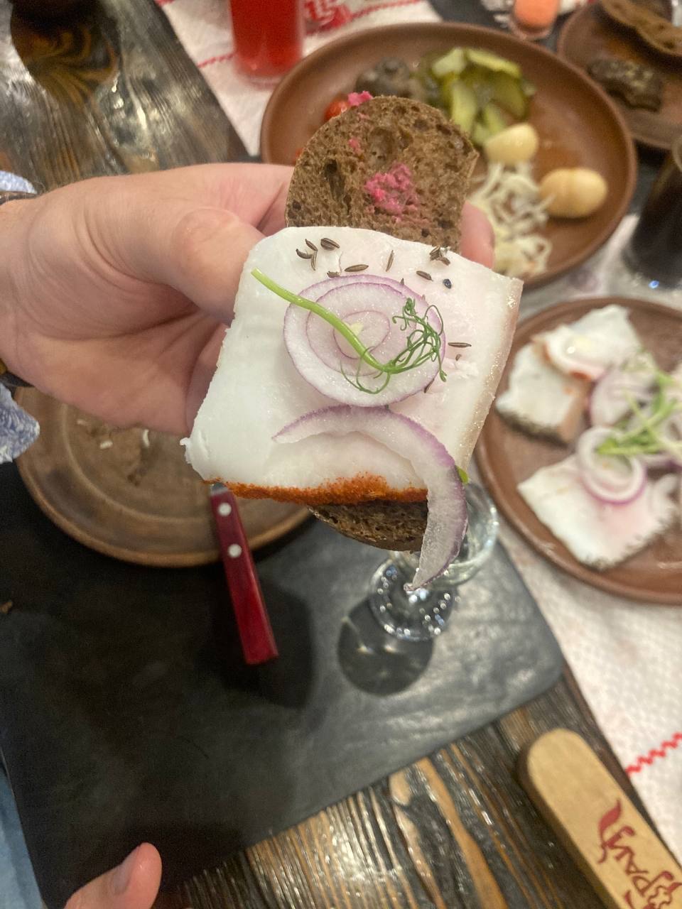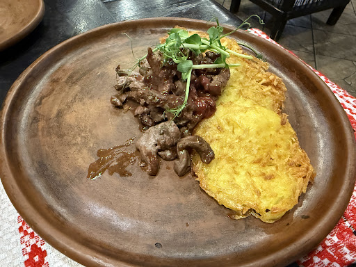 Сame here for dinner on a Friday evening. It was quiet. Only about one third of the tables were occupied. Nice decor, tableware and waitresses. Had English menus. Freshly squeezed juices were good and bread was good. We had cold meets and mushrooms for starter to share and for mains potato pancakes with different sides , salyanka ( soup) , fish. Food was not fresh, salyanka tasted like it was made of some leftovers, about half of the starters and some of the mains were left unfinished and 3 of us had to get up in early hours of the morning to go to the toilet. It was not food poisoning but still did not feel good. Their own beer was not nice so switched to Amstel. Total bill was 1.7 millions which is about £63...