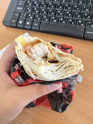 Сегодня зашла в кфс на ольшевского, мороженое как порошок! Стаканчик прогорклый! Персонал бы думать головой не мешало бы, говорит, держите мороженое, а бургер ждите, говорю, зачем я буду его держать, это же десерт! И я сделала заказ не на вынос, а в кафе! Недовольный сотрудник поставил мороженое в стаканчик, оно там потекло естественно, пока бургер готовили....ладно, по итогу ни ложки, ничего нет. Пожалела, что нет кота- как раз для него подача- слизать, вывалилось это мороженое на поднос, ладно, остаток вместе со стаканчиком всё же удалось "заценить"... ну а теперь бургер, мало того, что помяли, как после пресса, а про курицу, как будто 3 дня её убивали- жёсткая, старая.... Вишня на торте: через полчаса после такого суперперекуса- изжога, отрыжка, ну и конечно проклятья в адрес персонала сиего...