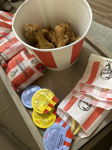 Read moreХодил по магазинам и возникло чувство голода? Вот, появилось неплохое место для перекуса. Да,это не кафе,куда придёшь долго сидеть и общаться с друзьями (хотя для молодёжи как раз),но вкусить свежую , тёплую, сочную курицу- точно по адресу. Есть автоматы через которые можно самостоятельно сделать заказ. Один блок столиков находится напротив собственного входа KFC в ТЦ, зимой ощущаешь каждое открытие двери и холодок, бегущий по ногам. Второй ряд в проходе.....стойка заказа и получения совсем небольшая, но как говорится, главное не толпиться По сути это даже не отдельно выделенная площадь в магазине, а "киоск " в прикассовой зоне Расположение удобное, у ТЦ парковка, да и до остановок транспорта...