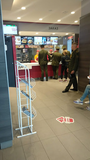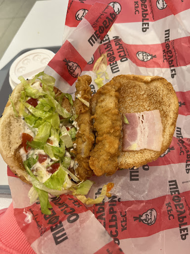 Read moreОт лучшего к худшему: Сервис в ресторане хороший, сотрудники приветливые, готовят достаточно быстро. Атмосфера разнится. В заведении может быть как и грязно до такой степени, словно это свинарник, так и кристально чисто. Еда отвратительная. Невозможно есть все, кроме картофеля, который дают настолько мизерными порциями, что ощущаешь себя так, будто ты жертва блокадного Ленинграда. За ведёрко фри ты платишь на рубля два меньше, чем в BK, но получаешь картошки на двух человек максимум, когда в том же бургер кинге картофель накладывают чуть ли не с горкой. О курице: Подают почти сырой, либо сухой, словно уголь. Upd: Забыл упомянуть, что туалеты с кодом. Так вот, туалеты с кодом и это чёртов беспредел. Понимаешь, что тебе нужно заскочить на секунду, потому что припёрло, а тебе нагло отвечают, что может совершить недорогую покупку и узнать код из чека....