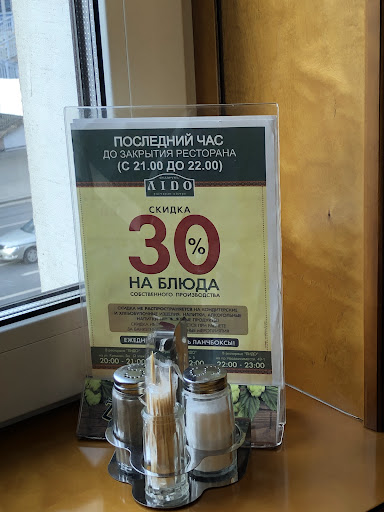 Минусы: Скромный выбор блюд. Отдающая советскими столовыми «Папараць-кветка» — просто скатерть-самобранка по сравнению с меню данной точки «Лидо». И это несмотря на разделение кухни аж на 2 этажа. Кстати, если вам сложно передвигаться, придётся выйти из ресторана и пилить к лифту, ибо лестница рассчитана на юных и прытких. Состав блюд. К примеру, стойка с салатами содержит не только компоненты, но и готовые салаты, которые... содержат мясо! Зачем добавлять в салат копчёную ветчину, если мясо и так можно взять отдельным блюдом? (Остаётся посочувствовать тем, кто вместе с салатом непредусмотрительно взял рыбу.) Описание с ценой при этом если и есть, то в каком-то труднодоступном месте, ибо за консультацией пришлось обращаться к сотруднику на раздаче. Традиционные для «Лидо» неудобные места. Кресла с подлокотниками, рассчитанные на объёмы крепышей из Бухенвальда. Одиночные места отсутствуют в принципе — в результате один человек занимает стол на четверых, а вы с компанией мечетесь с подносами или просто стоите над душой у собирающихся.