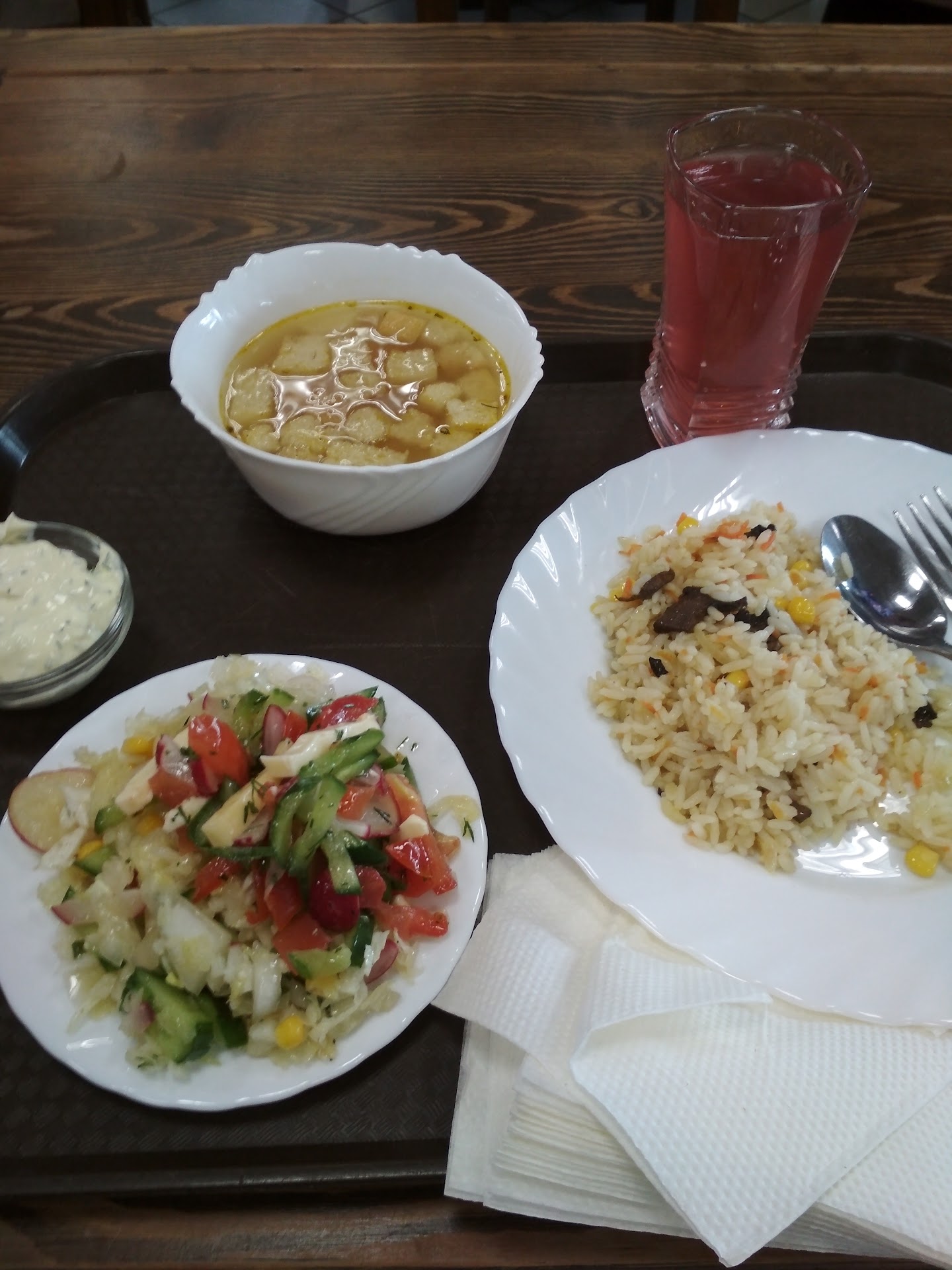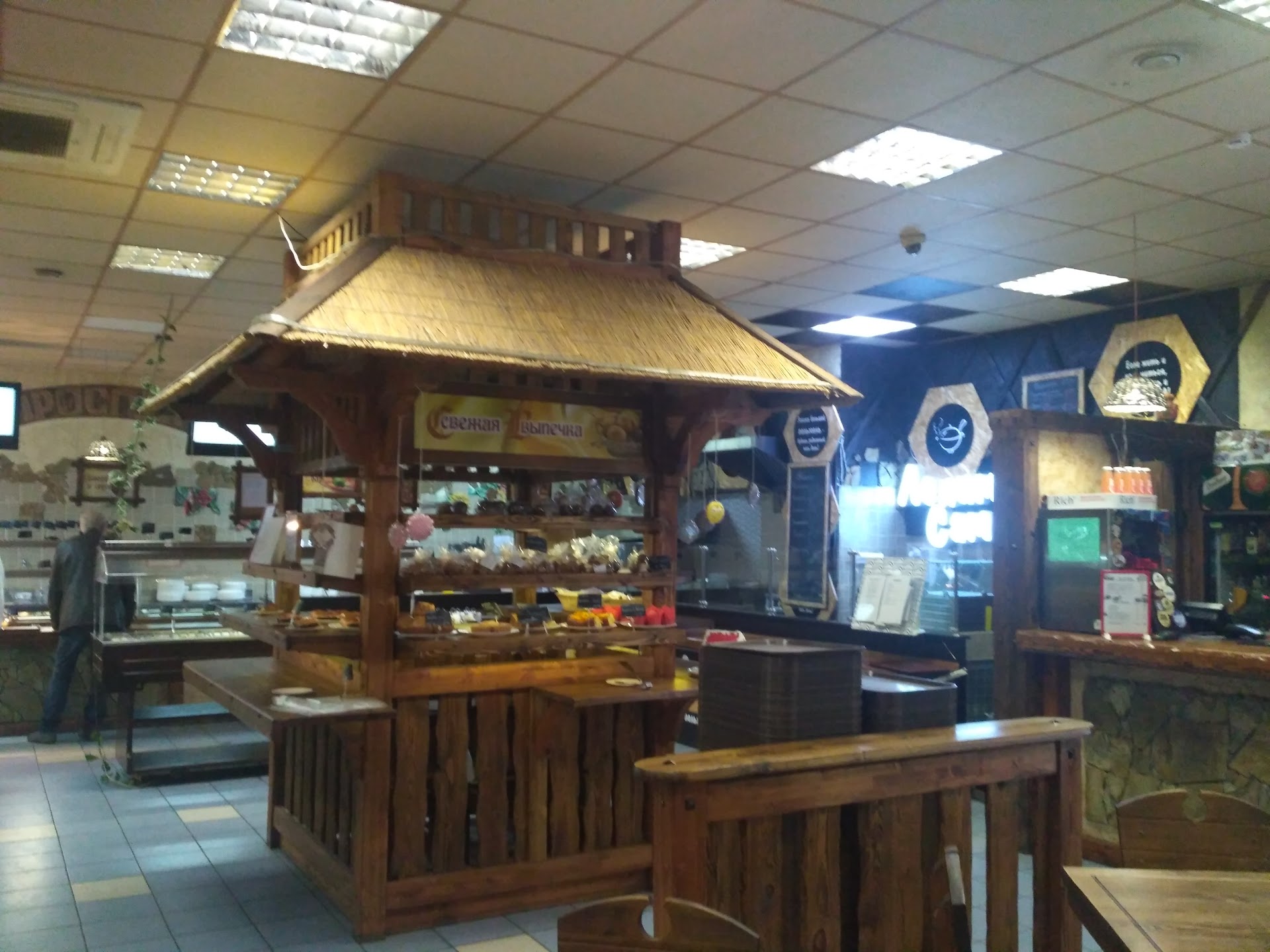 Read moreМне заведение не понравилось, если воспринимать как советскую столовую при заводе, то очень даже. Хотя дизайн помещения подкупает ожиданием хорошего сервиса и блюд, еда мне показалась не вкусной. Суп-рассольник на 3. Картофельные оладьи вроде как национальное блюдо, реально есть не смог: жесткие как резиновый коврик с невнятной мясной начинкой. Даже на АЗС где заправлялись, драники были вкуснее. В качестве альтернативе чаю- напитки в меню ГОРЯЧИЙ (отличная идея в ноябре, тб кофе там из нескафе-автомата) -клюквенный или лимонно-имбирый горячий напиток. Все ничего, но по факту вода в термосе была холодной комнатной температуры. Сервис тоже не радует, официант, готовящий зал для группы посетителей расставляляя стаканы с компотом, берет их за верх стакана, ее ладонь оказывается над содержимым стакана и там, где ее пальцы прикасаются к стакану посетители прикасаются губами. Прошу прощения за подробности, но так нельзя! Или руки официанта должны быть в перчатках, или стакану нужно брать за низ стакана! Это азы санитарной культуры. Отзывы ниже сравнивают данное заведение с Лидо, это Сооовсем разные вещи! Мы в прошлый и позапрошлый визит кушали в Лидо, это небо и земля и по сервису и по качеству блюд. В этом году живем в Юбилейной и идти до "Проспекта" одну минуту. Если живете в Юбилейной, то не поленитесь и пройдите еще 300 метров до большого ТЦ с вывеской KFC - на верхнем уровне есть фуд-корт (там не были), на нижнем этаже есть супермаркет, в нем есть небольшое кафе. Поверьте, при сопоставимых ценах там...