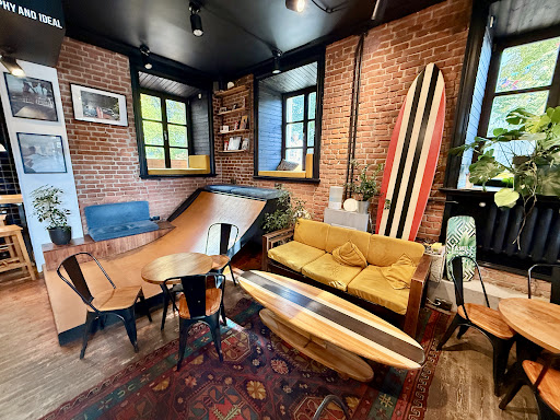 Read moreCozy place, the interior suits the name: surf boards everywhere, neon lights, stickers on the bar - pleasant and unique atmosphere. Coffee is good, but I personally would appreciate some alternative methods of brewing too. Unfortunate, but instead they offer some author’s cocktails which is great if you like to taste something a little bit different. Desserts are delicious and really fresh. Overall: overpriced, but still good...
