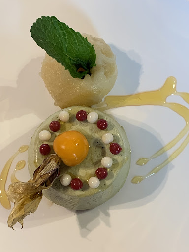 Read moreDans un cadre très agréable (orange et rose, de vraies roses d'ailleurs) avec des tables bien espacées, nous avons bénéficié d'un accueil discret, attentif, professionnel... Les entrées, plats et desserts nous ont conquis, par leur présentation élégante et évidemment le goût... Le Côte du Rhône 2019 (22 €) qui a accompagné le repas était bien équilibré. A conseiller et à refaire quand nous...