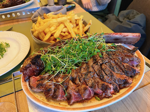 Read moreUnfortunately this is one of those places that fools you with the online pictures. The interior gives you a general feeling of a Chinese restaurant instead of a qualitative steak house. Except for those few chandeliers, the place was not very trendy or cosy. The food was seriously overpriced, however it was tasty and grilled to perfection. The sidings were disappointing, a small unimaginative salad, some mayo and a green mountain of some vegetable. The staff was not very social but they were helpful. This place, with it's catchy name,...