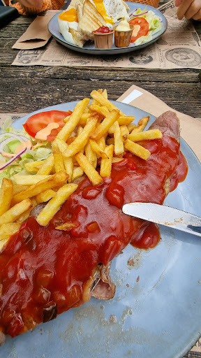 Na een Lange wandering in het prachtige bos, werd onze aandacht getrokken naar deze zaak. Op het eerste zicht, een fantastisch plek met een groot buitenterras, ligstoelen in de grote tuin...Alle ingrediënten Waren aanwezig om hier te genieten van een lekkere maaltijd. Ik bestelde een hamburge met de welluidende naam "pendejo verde"r (dat was volgend het peroneel de specialiteit hier) en mijn man die zelf een horeca zaak runt, stoofvlees. Het viel hem al op dat de asbakken overvol op tafel bleven staan, Hoewel er hooguit 10 gasten zaten en er 4 personeelsleden aan het werk waren. Na 40min wachten, kreeg mijn man volledig uitgehongerd een minuscule kabouterbakje stoofvlees met 5 stukjes vlees en een potje uitgedroogde sla. Ik kregen alles behave wat de kaart beloofde, een inspiratieloos broodje met een prefab avocadeburger tussen. Ik ging op zoek naar de smooth red pepper relish en sweet pickle relish...maar zag enkel een rozige vlek saus die het broodje al jaren geleden had geabsorbeerd. De battered onion rings waren waarschijnlijk verdampt onderweg.... Mijn man sprak een personeelslid aan over de omvang van het potje stoofvlees en kreeg het antwoord dat hij nog een 2de portie kon bijbestellen. Ik vroeg naar de " verdwenen" ingrediënten en hij wees naar deze vlek op m'n broodje. Geen enkele toenaderingspoging om ons tegemoet te komen en wanneer we onze teleurstelling uitspraken, nam hij op een brutale manier onze Borden weg en zei: ja, dan niks he...Zonde van het mooie kader en het potentieel. Ik kan me inbeelden dat een drankje op een zonnige dag hier heerlijk is, zolang je geen...