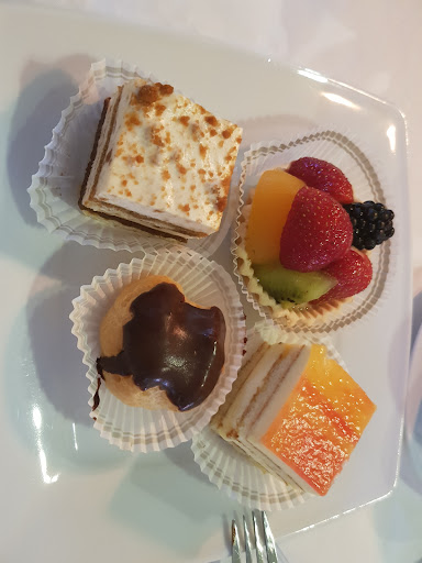 Uitbater dacht dat we een uur later zouden komen voor koffietafel, maar toch stond charcuterie, hesp, rosbief, américain, slaatjes,.... Dit stond dus al meer dan een uur in de warmte, wel met...