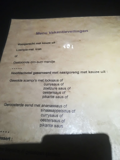 Read moreHet was van binnen mooi versierd en we werden netjes verwelkomd. Als voorgerecht namen we de vegetarische mini-loempia's en deze smaakten goed. De salade die hen vergezelde, smaakte ook vers.