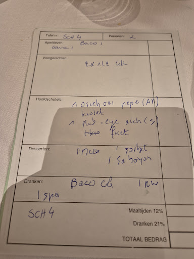 Enfin, we bestellen een filet pur en een ribeye. "Mag ik even informeren of wij zelf richting kunnen geven aan het serveren van kroketten dan wel frieten," vraag ik aan een kordate dienster. Het kan. "Voor mij kroketten, en voor hem frieten dan."