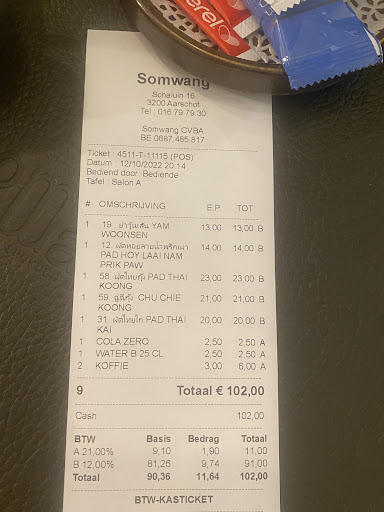 Read moreIk kwam speciaal naar dit restaurant omdat ik tijdens de laatste vakantie in Frankrijk een verbazingwekkend lekkere ped pad king gegeten had en enkel in dit restaurant in Aarschot kon je dit bestellen volgens hun website. Dus gereserveerd daar, maar eens ter plaatse bleek dit gerecht niet eens op de kaart te staan. Je kan dit blijkbaar enkel als afhaalgerecht bestellen (staat niet op hun website vermeld). Dus aan de opdienster gevraagd dat ik dat gerecht toch niet kon krijgen omdat ze het toch ook moeten klaarmaken als je het via de take away bestelde, maar dat kon blijkbaar niet ??? In plaats van in te pakken moet je het toch gewoon op een bord brengen ??? De opdienster argumenteerde nog dat als we nu regelmatige klanten waren dat dat wel kon ??? Klant is toch koning en nieuwe klanten moet je toch verwennen zodat ze terugkomen. Hier kom ik dus spijtig genoeg...