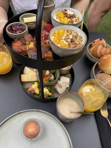 Read moreHeerlijk ontbijt gegeten met huisgemaakte granola met mango en yoghurt, mini pancake met aardbei, een slaatje met mozzarella en tomaat, krabsalade, kippenwit met curry, 2 soorten kaas, confituur, hagelslag, broodjes, sandwiches, koffiekoekjes en suikerbrood en een vers fruitsapje en koffie. We werden ook vriendelijk bediend en de zaak is gezellig ingericht en het terras heerlijk op een zomerse dag. Écht...