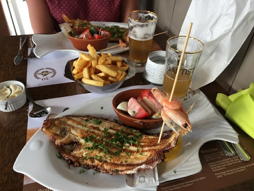 Mooie ontdekking in de diepe Westhoek. De Picon witte wijn was voortreffelijk en - zoals het hoort - zonder ijs geserveerd. Deze godendrank kan ook ter plaatse in flessen van 1 l of zakken van 3 l gekocht worden (€ 20,- of € 53,-). Onmiddellijk ook was er brood met boter, kaas en een hapje bij het aperitief. Zelf eet ik geen mosselen maar de mosselen van het huis bleken super lekker voor mijn tafelgenoten. Mijn royaal stuk zalm was goed afgekruid en perfect gebakken (en zeker niet droog). Heel lekkere frietjes. Vlotte en vriendelijke bediening, niks op aan te merken. De desserts (ijscoupes fruit, brésillienne en dame blanche) waren mooi geserveerd en lekker. Mijn Irish coffee had zeker voldoende whisky. Voor een totaal van € 273,- voor 5 personen (incl. drank, 2x Omer en 2x witte wijn en wat water) hebben wij zeer lekker gegeten. Een aanrader !...