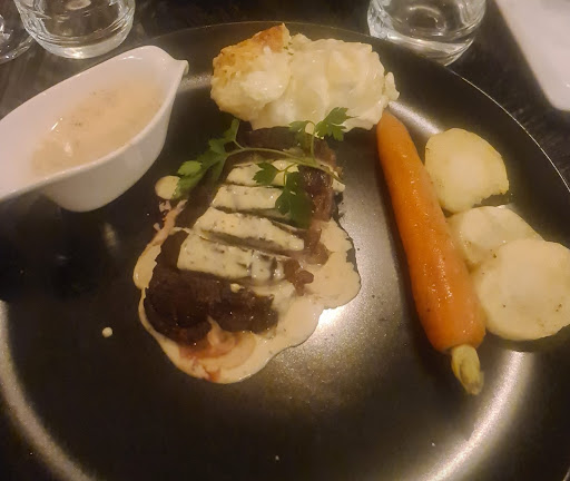 J'aurais aimé pouvoir dire que c'était bien, mais non. Nous sommes arrivés a 18h30, nous sommes repartis a 21h30 pour seulement deux entrées et 5 plats, sans cafés ni desserts. Et malheureusement, hormis les entrées qui étaient vraiment bonnes, aucun des 5 plats ne valait son prix. Petite tête de veau , escalope milanaise extra fine , salade de lardons en plat qui ressemblait à une version entrée , steak cuit pas a la bonne cuisson et sauce poivre qui ressemble a de la creme sans poivre. Malheureusement nous n'y...