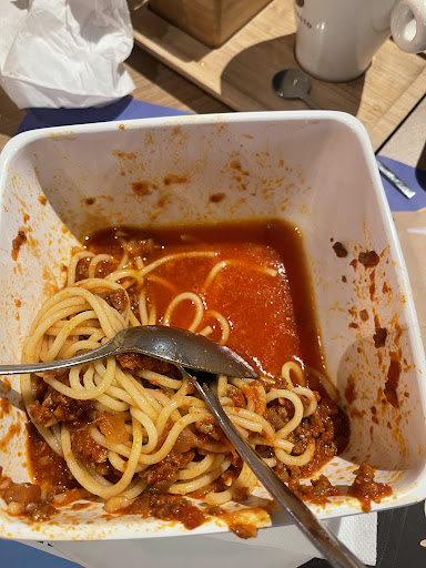 Et pour couronner le tout : je vois mes pâtes prêtes en cuisine. La cuisinière sonne 2-3 fois… personne ne bouge. Je dis rien, je veux juste voir combien de temps ça va traîner. Résultat : 10 minutes à attendre pour recevoir un plat froid, pas assez de sauce, et LITTÉRALEMENT TREMPÉ D’EAU parce qu’ils ont même pas pris la peine d’égoutter correctement.