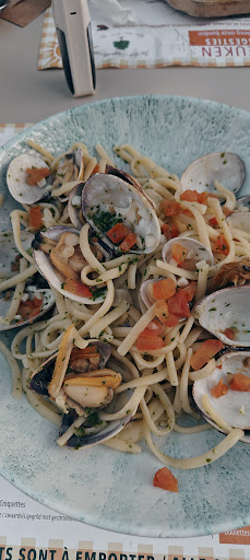 En toute honnêteté, cette expérience a été une grande déception car nourrie par beaucoup d'attentes. Pour le contexte, il s'agissait d'une fête d'anniversaire pour ma belle fille, sans chichis, sans prévenir à l'avance la raison d'une tablée de 6 personnes, juste l'intention de venir bien manger dans un endroit toujours complet et bien noté. Première visite donc. Tout d'abord, saison estivale donc beaucoup de students, prévisiblement peu attentifs à la salle, sauf une, ce qui nous a valu des attentes interminables afin de pouvoir commander des boissons ou encore assez bizarrement le deuxième service. Le cadre lui reste extrêmement agréable et appréciable, surtout pour les familles, placés en terrasse côté jardin nous avons pu en profiter pleinement, ainsi que des enfants mais c'est tout à fait normal. Enfin, le gros du dossier, les plats quant à eux furent plus que décevant, ne dépassant pas le seuil "cantine". Comprenez bien que je noterais de manière excellente une brasserie qui prépare ses plats d'expression simple avec gentillesse et fierté méritée au juste prix, ce ne fut malheureusement pas le cas pour cette adresse. La carte est brouillonne, d'un caractère assez méditerranéen elle n'en atteint même pas la cheville. L'encre sur le panneau des suggestions a séché au fil de nombreuses saisons, au point que les scampis "Appelboom" n'ont qu'une saveur caoutchoutée et de fond de pot d'épices, et quant à la pomme, quelle pomme ? Un désastre. Pour ma part, j'avais commandé mon plat fétiche, Linguine a Vongole, qui permet d'établir un ordre de maîtrise parmi les restaurants se revendiquant italiens, le résultat était édifiant : des pâtes sèches avec un fond d'huile déposé au fond de l'assiette après une attente probablement trop longue sous le passe-plat. Des coques trop grosses et trop laiteuses pour être honnêtes, mais soit, après avoir tenté de raviver les saveurs avec ma fourchette, je n'ai que pu me satisfaire d'un d'arôme de brise lame sec couvert d'algues au soleil, après avoir goûté une fourchette de pâtes et une palourde j'ai renvoyé le plat en cuisine avant même que les invités ne soient servis. Pour faciliter le travail au personnel j'ai demandé des moules qui sont relativement rapides à préparer, que je n'ai pu commencer qu'une fois que chacun de mes convives ait terminé. Les moules quant à elles, furent excellentes. Les petits os de ma compagne faisaient peine à voir, nature morte de duo de côtes posés sec, à même l'assiette sans aucun soin, et peu appétissants.