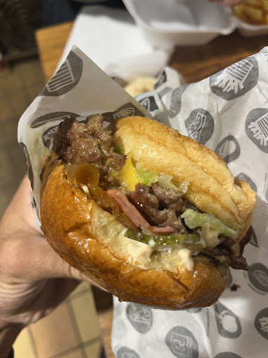 Guys, donât eat here. Weâve never had to throw bought food. We were supposed to get bacon in our hamburgers that we ordered on Uber eats, turns out we get some other weird meat instead that looks like mortadella? And the loaded fries? Jesus Christ why would you put freaking plastic tasting non-real cheese on it. And the worst part was that there was no jalapeño on them, but the picture on the app clearly showed that. Additionally, these were one of the softest and pastiest fries Iâve ever had, tasting like flour mixed with water.