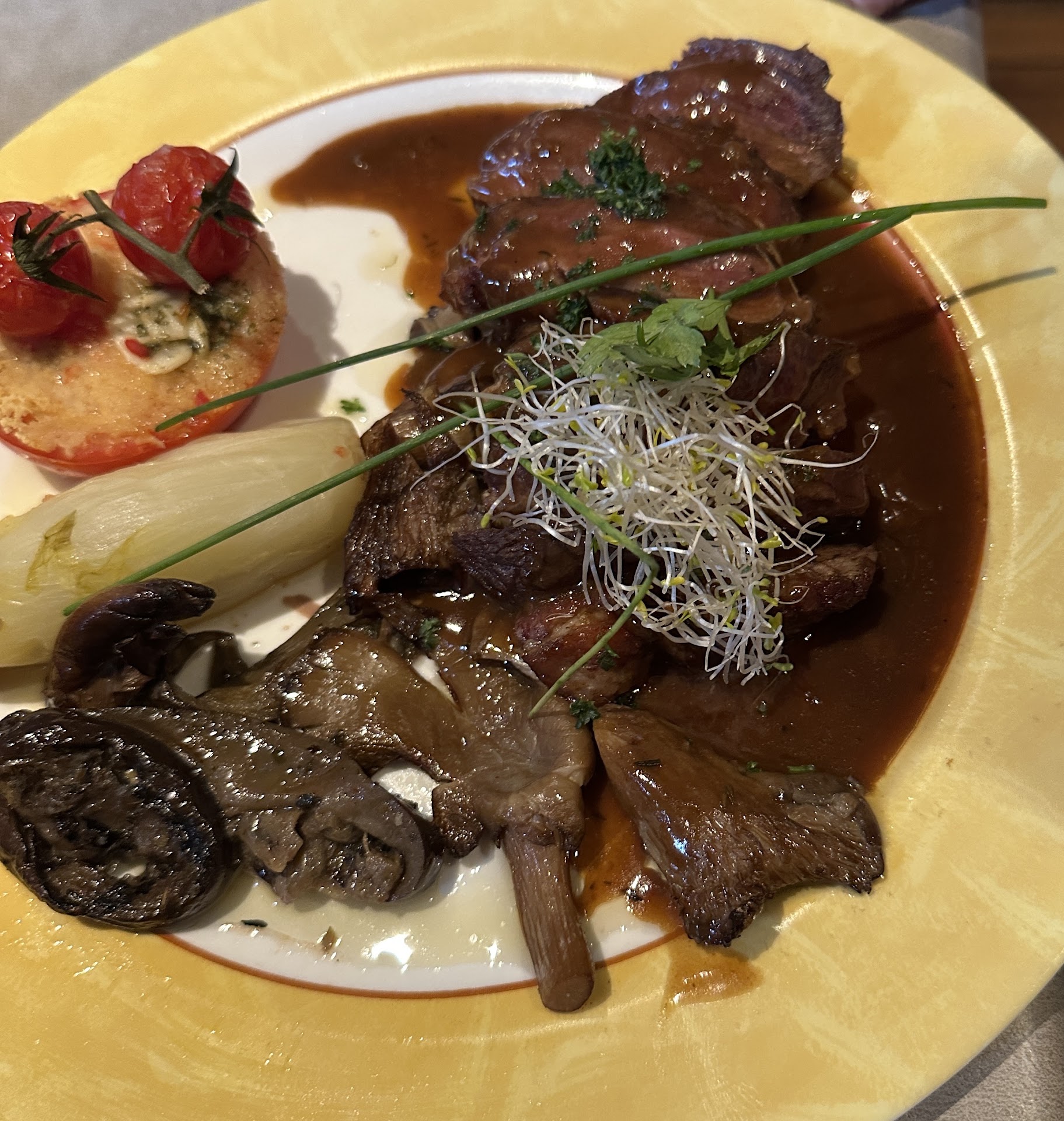 Read moreNous avons commandé respectivement à 3, un hamburger frite à 20 €, sensé être de la vraie viande, et une côte à l'os de Salers pour 2 personnes à 10 € des 100 gr. Passons sur l'hamburger demandé saignant arrivé noir comme la pierre et sans jus. Je n'ai pas l'habitude de commenter pour un repas mais quand on se moque du client, à la limite de la fraude, il faut dénoncer. 1ere chose, la côte à l'os n'était pas de la Salers. Pas de persillage sur la viande alors que c'est une des caractéristiques fortes de la Salers. Le goût probablement d'une irlandaise. 2ième chose, l'os n'était pas l'os de la viande que l'on nous a servie. Nous avons tous les 3 sentis que l'os datait et était rance. La viande n'était pas une côte à l'os, probablement une entrecôte ou un filet. En conclusion, on nous a vendu une viande 'normale' au prix de 10 € les 100 grammes et ils ont camouflé cela avec un reconditionnement bidon et dangereux pour la santé. Une véritable fourberie. Nous avons avertis le serveur qui en a fait part au cuisto. Quand on pose ce genre d'accusation auprès d'un cuisto qui n'a rien à se reprocher, le cuisto fier de son travail n'hésiterait pas à venir s'enquérir de la chose or, dans notre cas, il a juste remballer en première ligne le pauvre serveur qui nous nie au nom du cuisto. Merci au cuistot d'avoir dénoncer une hallucination olfactive collective de notre table. Est-ce que j'y retournerai? Sans aucun doute NON. et pourtant nous...