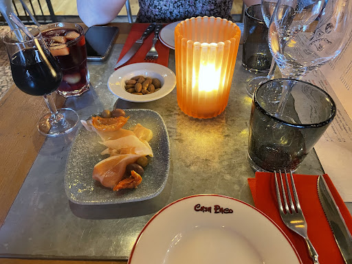 très beau cadre, chic et sobre à résonance, évidemment, espagnole mais sans toutefois en faire de trop. Les photos que vous trouverez sur Google de l'endroit ne rendent pas comme vous le constaterez sur place. Tout est noir avec des notes de métal et de bois qui viennent renforcer le côté chaleureux du restaurant. J'ai adoré, perso.