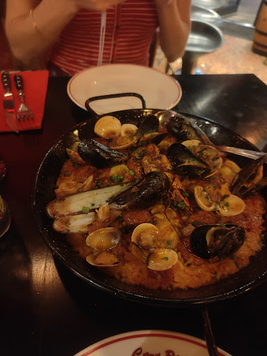 D'un point de vue alimentaire, sur 14 couverts, nous avons eu l'occasion d'explorer une bonne partie de la carte. La majorité des "tapas" étaient ok. Le plat "vedette", la Paella quant à elle, bien que servie en quantité suffisante pour le nombre de couverts sélectionnés, était qualitativement un échec. Si le riz "Bomba" était plutôt bon, le reste de la préparation n'était pas à la hauteur. Les crustacés servis non décortiqués et les coquillages dans leur coquilles, donnaient certes un effet visuel massif, presque instagramable, mais étaient gustativement décevant. Les moules et les gambas avaient peu de goût et certains coquillages contenaient des petits grains de sable craquant sous la dent ... Pas terrible.