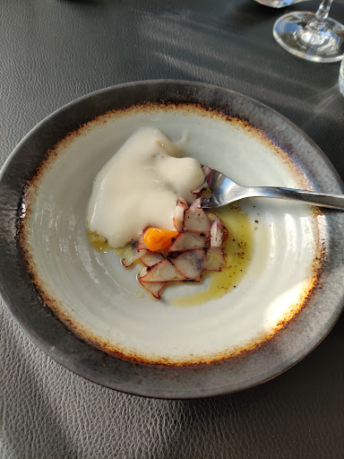Read moreAu vu des autres avis , soit ce n'était pas le bon soir , soit je n'y connais pas grand chose. Dans les entrées, carpaccio de poulpe qui pour moi est un tartare de poulpe mais peu importe le nom , les goûts étaient en harmonie, Il y avait aussi une entrée vėgė , ou il manquait , oubli du cuisto la portion de quinoa que nous avons dû réclamer, une coupelle biscuit industrielle en guise de contenant . Peut mieux faire ! Plats , pâtes carbonara hyper sèche avec bcp mais bcp bcp de persil ce qui a cassé le goût du carbonara Pâtes putanesca très bonnes.. Ambiance : il faisait froid dans le restaurant, certain convive on remis un veste 😐😐 Des patins de feutres serait vraiment indispensable sous les pieds de chaises, quel bruit tout au long du repas par les autres ( et sûrement la nôtre ) tables . Service à table agréable avec un serveur ne connaissant pas bien les plats servi et devait retourner en cuisine demander au chef afin de répondre à nos questions . Ma conclusion : nous y avons été mais nous n'y retournerons certainement plus. Peut être pas le...