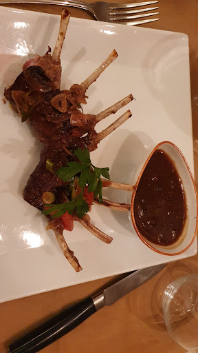 was benieuwd omwille van de goede recensies maar was uiteindelijk wel teleurgesteld. voorgerecht goed lekkere garnaalkroketten hoofdschoten filet pur was precies gekookt lag ook in water te drijven op mijn bord geen bloed dus . Bearnaise was te ver gegaard en vooral de pepersaus van mijn echtgenote veel te veel peper in .bedienig was ok maar glazen op tafel komen zetten met de vingers aan de binnenkant vind ik niet ok. wachttijd die loopt wel op . Kan beter...