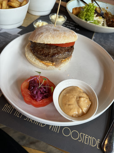 The culinary journey at Aan het strand van Oostende is a testament to the rich flavors and high-quality ingredients that define the establishment. The steak with peppercorn sauce is a standout, boasting a perfect balance of spice and savoriness, while the fish burger, with its crispy exterior and succulent interior, is a must-try for seafood aficionados. Even the classic mac & cheese is elevated to new heights, with a creamy texture and a comforting taste that feels like a warm embrace.