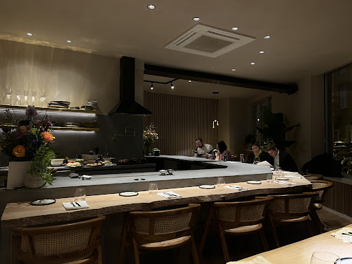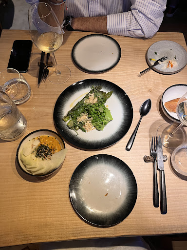 Read moreI am extremely happy that Antwerp was gifted this gem of a restaurant ! The decor is refined and the pairing of natural materials and colours makes it relaxing to the eye. The main reason you’ll come here though is for the food. The chefs (who work right in front of you behind the bar) meticulously create the dishes you are served. We sat at a table but the coolest experience must be at the bar, where you can experience from close by the making of your meal. It’s a sharing concept, some dishes are bigger and more filling than others, so go for 1,5-2 dishes per person (more if you’re very hungry). The radishes with cashew cream are a must, you’ll want to lick that cream off your plate, it’s that good (but you won’t because this is a refined establishment) and the butter basted celeriac will surprise you with its rich and unexpected flavours (I forgot to take a picture of it!) We also had the broccoli with chickpea pancake which was delicious and a slice of the cake of the day. The amazing thing is that it’s all vegan. We were here for an early dinner and we will come back...
