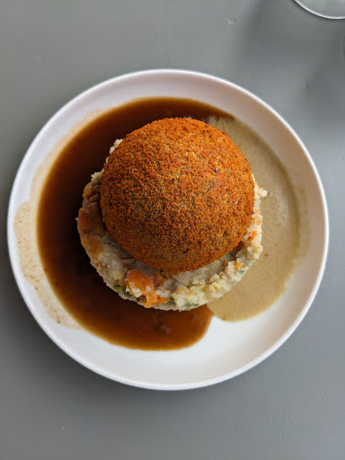 Read moreThis place was great! I was incredibly skeptical since I'm not a big meat-eater, but I was pleasantly surprised. The lemongrass chicken ball with quinoa, beet and feta salad was my choice, and my friend chose classic pork with stamppot (mashed potatoes and gravy). Both were really really good, and I definitely want to revisit. The staff were really friendly and had no issues with our indecisiveness. While waiting for my friend in the bathroom he even explained a bit about the vegan balls they're hoping to be able to offer soon, and genuinely seemed to be invested in the business. Interior was very large and very hipster. Behind the main "bar" being used for the restaurant was a more lounge-type area that with a drinks bar and another serving type area that is clearly used when the place is more full. Highly recommend this place. Wasn't fast-food cheap (€14.50 for one plate) but the amount of food is really decent. (It's a huge ball of meat for...