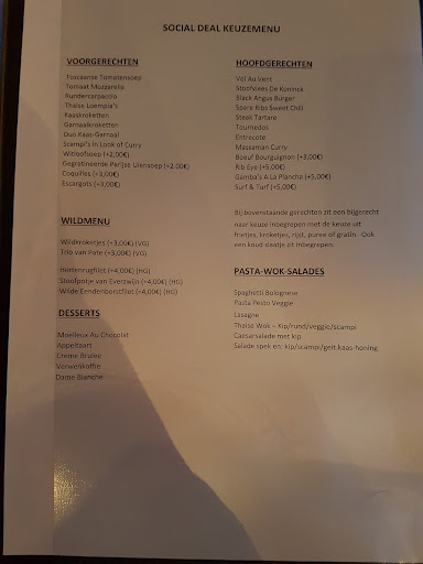 Read moreZe zouden in dit geval ook minpunten moeten kunnen geven Op zondag middag met een bevriend koppel via een social deal gaan eten met 5 personen, deze bon was voor 4 p , gevraagd of er een probleem was met een bijkomend persoontje. Dat was geen probleem , ( het enige pluspuntje van de middag ). We komen binnen in een regelrechte ijskelder !! Van een gereserveerd ( proper tafeltje ) geen spoor . We krijgen vieze plakkerige menu kaarten in onze handen geduwd We bestellen eerst onze aperitief ( mijn vriendin heeft vruchteloos gezocht op de kaart achter een rosee wijntje ) Er wordt een pineau de charentes , 2 campari orange , een mojito en een sprite besteld . Het enige juiste dat aan de tafel kwam was de sprite , er was geen pineau , noch campari in huis , de kelner kende blijkbaar niet de samenstelling van een mojito. De pineau werd een Chardonnay ( wat we niet op de kaart terugvonden ) pas na een 15min , kwam hij zeggen dat er geen campari was , een rode martini werd in de plaats gevraag en een koffie , omdat het ongelooflijk koud binnen was . Terug na 15 min komt de kelner vertellen dat het koffieapparaat niet opstond en dat die nog een kwartier moest opwarmen , in de plaats een warme chocomelk die de kelner boven ergens moest opwarmen ??!! We bestellen ons menu'ke , de voorgerechten waren 1 scampi met look en 1 met curry , tomatensoep , kaaskroketten en de carpaccio , hoofdgerecht 4X tournedos met 2 pepersaus en 2 champignonsaus en een lasagne . Er werd niks gevraagd over de bakwijze van het vlees ?? De kelner begon uiteindelijk toch in te dekken , we merken dat de gepresenteerde servetten nat zijn , waar we dan vragen om droge , propere,, het antwoord van de kelner is hilarisch , jamaar mevrouw ze zijn proper zenne , heb er net jullie servies met gepolierd ???!!! Ok maar geef er dan andere , ah dat gaat niet want dit zijn de laatste ??!! De voorgerechten komen aan tafel , van look bij de scampi's geen spoor, de rest was ok , maar de scampi's hadden warm mogen geserveerd worden. Het brood dat erbij was , was niet vers , ontdooid brood is niet vers Dit word afgeruimd , en na een dik half uur , ( reservatie om 15u ) zitten we al bijna 2u daar binnen , komt onze hoofdschotel De chef van de keuken had dus het vlees maar random klaargemaakt , de pepersaus viel nog mee , de champignonsaus was aangedikte champignonsoep , en om de boel te laten exploderen , de lasagne van mijn zoontje waren ze vergeten in te steken Dan was de maat vol , gevraagd of de patron in huis was , ik wou een woordje zeggen , we wilden onze dessert laten vallen en zo opstappen de rekening van de drank laten vallen in ruil voor de desserts, en de lasagne moest ook niet meer , mijn zoontje had mee frietjes gegeten We zaten intussen al meer dan 3u aan tafel in een nog steeds ijskoude zaak , we hebben veel mensen zien binnenkomen en gewoon terugdraaien omdat het koud was Kortom de zaakvoerder, gerante weigerde om ons te spreken (3 keer gevraagd )en stak alle verantwoordelijkheid af op een onervaren kelner ( eerste dag volgens hem ?? , zo iemand laat je niet alleen in een zaak mijn inziens ) Uiteindelijk 20euro op tafel gelegd en opgestapt , Kortom een schandalige bedoening , de eigenaar moet zijn volk beter opleiden , en zien dat wat er op de kaart staat aanwezig is , zeker qua drinken Het is not done , dat er tijdens de service nog naar de winkel moet gelopen worden om martini, campari en chocomelk te gaan halen Koffieapparaat dat om 15u niet opstaat op zondagmiddag ??? Er voor zorgen dat zijn zaak warm genoeg is , jullie hebben daardoor tientallen klanten terug de deur uitgejaagd, en zonder deze social deal hadden wij hetzelfde gedaan. Op deze manier is jullie zaak een kort leven beschoren . Terugkomen naar deze zaak , alleen wanneer kerstmis en pasen te samen vallen ,...