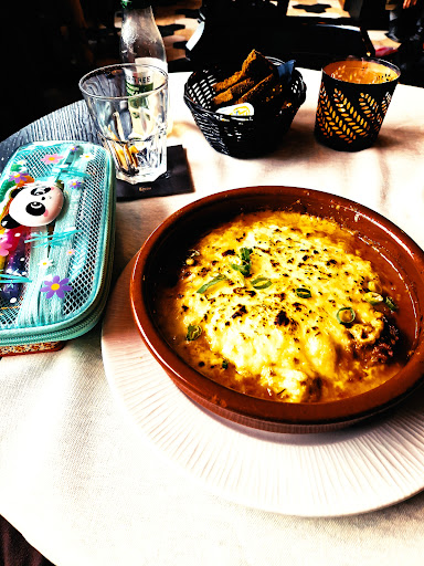 The place itself was warm and welcoming, very nice atmosphere and calming music. The staff member that greeted us was however not very professional. We asked if they had a table for two and instead of escorting us to a table, she told us to go ahead and choose a place on our own. Very well, but rather odd for a restaurant in my opinion. On the advertisement board outside the restaurant they advertise their daily menu for €14,50 per person but when we came inside it said on the menu that it cost €13,50 per person. Misleading information. Anyhow, we wanted to order the daily menu which includes soup, dish of the day and coffee. Except for the fact that apparently they only had one daily menu left even though we were there between 19:00 and 20:00 which is prime dinner time. We got to order one main dish off the menu instead as part of the daily menu, so that was good I think. Finally the ordering was through and the soup arrived with tasty bread on the side. After eating two or three spoons of the soup, I discovered a rather big piece of plastic in my soup! How does that even happen?! When I informed the waitress who was serving us she simply raised her eyebrows and shoulders and asked me 'And?'. Eventually she asked me if I would like a new soup which I accepted. No plastic in the latter soup. Main dish and tea tasted good.