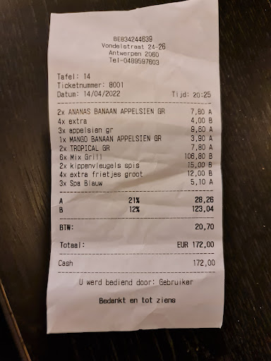 Read moreThe food there is all out AMAZING. 10/10. I've eaten there over 3 times now, and everything I've eaten is top notch. Hat off for the cook. BUT.. the service is terrible, at least how you're feeling as customer. I got stressed and rushed, and as soon as I was thinking for a second or two, the guy taking my order instantly went to help someone else, and I was to wait for THEM to finish. I also got told we could pay with Meal Cheques on the phone, that wasn't the case. The person taking my orders also doesn't speak clear Dutch / English. But if you can bite through the service, and have the patience to, again, the food is insanely good. I'd definitely suggest...