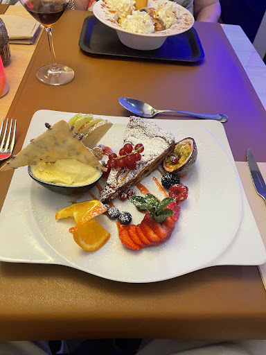 Toen we klaar waren met eten, duurde het ook lang voordat onze tafel werd afgeruimd en we de dessertkaart kregen. Het dessert zelf werd dan wel weer snel geserveerd. Maar, hier werd de koffie dan vergeten, en het bolletje ijs bij de Moeilleux ontbrak gewoon helemaal. Eens we iemand te pakken kregen (en de moeilleux afgekoeld was), werd een bolletje ijs na gebracht. Bij het afrekenen ondervonden we opnieuw hetzelfde probleem: het was lastig om iemands aandacht te trekken, waardoor we uiteindelijk zelf naar de kassa zijn gewandeld om daar te betalen. Er was één personeelslid dat wel erg zijn best deed met alle foutjes die er gebeurde. Uiteindelijk hebben we 2u30 hier gezeten omdat we zo lang moesten wachten op 1 hoofdgerecht en 1 dessert per persoon. Ondanks deze minpunten wil ik benadrukken dat het eten heerlijk was en van uitstekende kwaliteit. Het personeel was ook heel vriendelijk, alleen verliep de service niet zo vlot als ik had gehoopt. Hopelijk wordt hier in de toekomst wat...