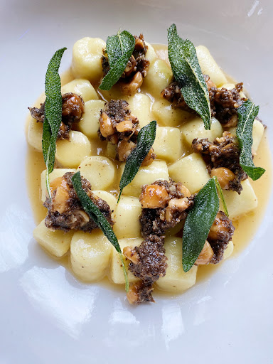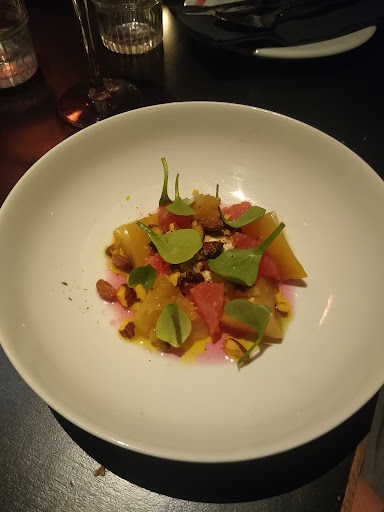 From the slightly charred Brussels sprouts with tahini and enoki mushrooms, over the pillowy gnocchi with truffle, hazelnut, sage and citrus that redefined our idea that gnocchi are per definition a heavy, buttery, cheesy dish, to the crispy and tender porkbelly with rhubarb that revealed a different flavor with each bite: every single dish was original, surprising, masterfully executed and presented aesthetically. The riz au lait with rose petals, parsnip confit, cacao nibs and bergamot, and the milk chocolate mousse with a blood orange granité and puffed black rice where the kind of desserts that are totally worth skipping another savory dish for. Loved every bite and spoonful. Plus, the staff is knowledgeable, warm and welcoming. They clearly love what they’re doing and it shows in every aspect of your experience there. Will...