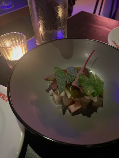 Read moreWe hadden van tevoren doorgegeven dat er iemand zwanger was in ons gezelschap. Bij aankomst vroeg de bediening nog eens naar eventuele allergieën, en we herhaalden dat we intussen met twee zwangere vrouwen aan tafel zaten, en een vegetariër. Omdat we met vijf waren, besloten we toch alle acht de gerechten te bestellen. Helaas werd niet vermeld dat de dorade een ceviche was en de makreel niet volledig doorbakken – niet ideaal in deze situatie.