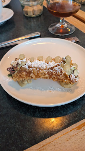 And now, the dessert. This was a pistachio cannoli that made all my suffering up to this point almost worth it. It wasn't overly sweet, and though a more intense pistachio flavour would have been welcome, eating this was a delight and was a high note to end the overall disappointment of the evening. Compliments to the chef!
