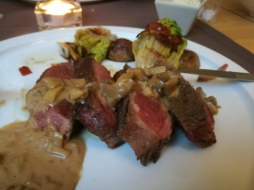Read moreExcellent tournedos with portobello mushrooms in as delicious pepper cream sauce. Meat perfect “bleu”. Delicious apples on a crispy bedding with vanilla caramel ice cream. An XO Calvados to slide it down. In one word a lovely and tasty experience. Menu is small but...