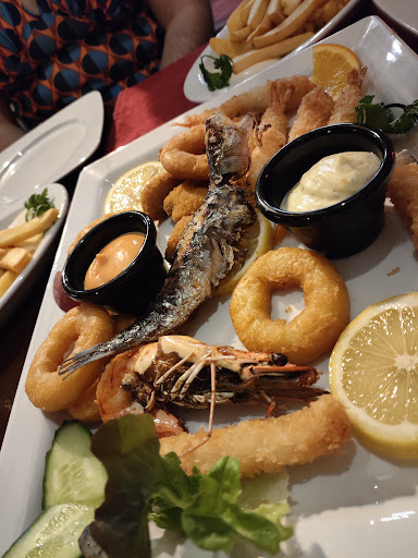 Instead the mix fried fish was the most sad and frozen one I've ever had at a restaurant - you cannot possibly charge 30+ euros for 5/6 frozen calamari, 5/6 fried frozen mussels, 5/6 frozen tempura shrimps, 1 and, I say just 1 grilled shrimp that was definitely not fresh and was absolutely chewy and overcooked - it's a shame!