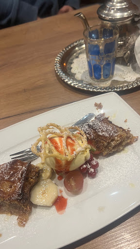 Invited to a dinner party, 3 course festive meal, mixed starter, main crown of lamb season veg, or chickrn breast, mixed desert, coffee and non alcoholic beverages, Warda cuisine, Moroccan. Quality of food and preparation very decent, tasteful, The girls who did the service were good at their job, friendly and very polite. This experience merits a repeat. Suggestion for improvement, give the waiting staff uniforms black shirt or blouse, black trousers and a black apron, and they will look the part very...