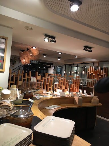 Being walking distance from the main station and having vegan options, it is really a great solution if your train is delayed or for a quick drop off. Salad is ok, not really creative or much choices or combinations for the vegans, but it taste healthy and fresh. Down point it is quite pricy and they use a lot of plastic containers. Of course you can have their amazing soups and bread and that is in carton for a bargain price. Free olive oil for dressing and tamari. But there are cakes and quiches and Im so happy I can get vegan food that I try to be 100% happy, but if they would use more paper and less plastic it would be, of course, better. One strong point, cuttlery is metallic. So they can wash it. No...